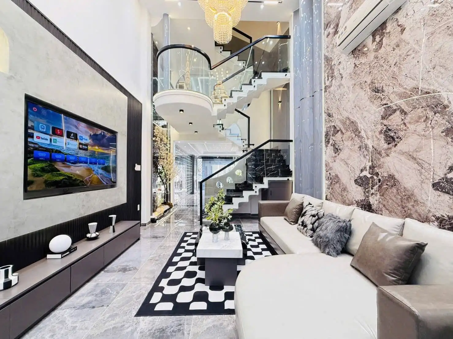 – Thiết kế: 1 trệt 1 lửng, 3 lầu. Có 4 phòng ngủ, 5 nhà vệ sinh, phòng tắm hơi, nhà bếp, phòng khách, sân thượng.