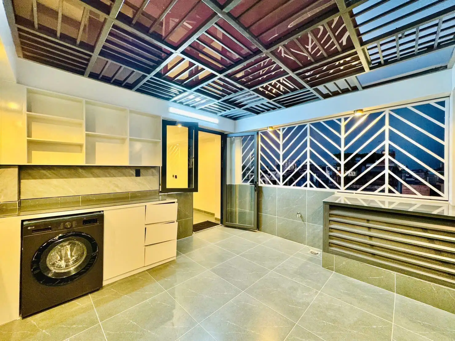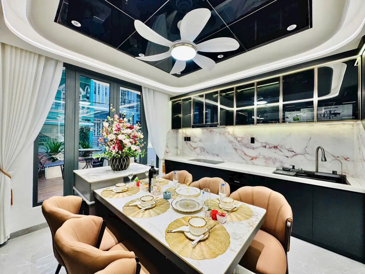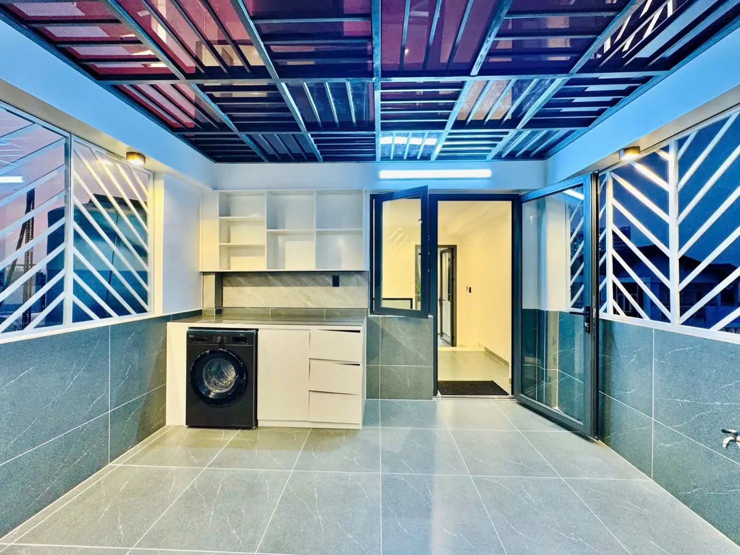– Thiết kế: 1 trệt, lửng, 4 lầu máy che cầu thang. Yên tâm có THANG MÁY 450kg.