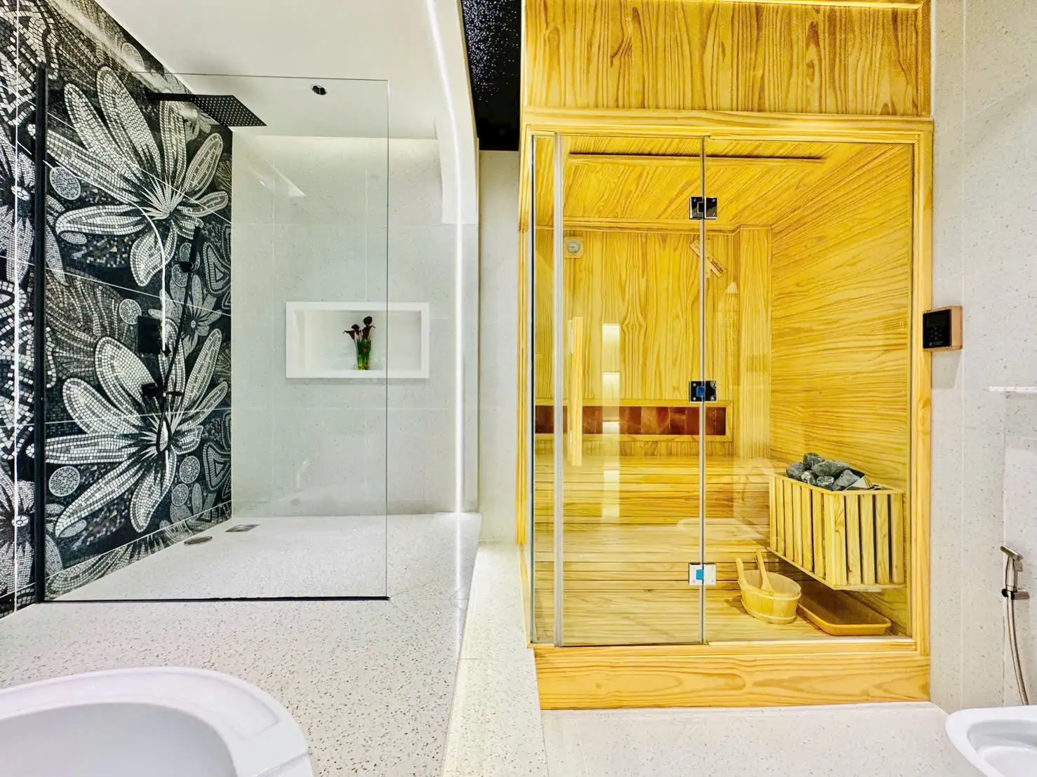 + Có 5 nhà vệ sinh, có phòng tắm xông hơi
